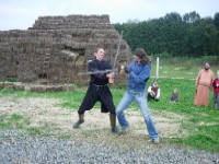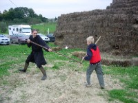 They arrived at 3pm, with some two more members of the Order of the black Crow and for four hours, the boys did archery, pole fighting, sword fighting and wrestling with the lads. They had a magnificent time. We were treated to demonstrations by the experts and saw how it could be done with a lot of practice. They only gave up when it became too dark to see the target – a large haystack!