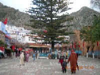 | We then made our way up to Chefchaoun in the Rif Mountains a beautifully calm, clean place. We couldn’t work out why there were so many flags adorning the road into the town, from miles out. Then we discovered that the King was due to visit in a few days time and the flags were in his honour. In fact, his entourage was going to stay at “our” campsite, under giant marquees. Rather them than me, it was really cold, even in the daytime.
