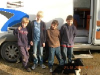 The photos may not be very clear, but they are of us all having lunch together and one of all the boys at the motorhome.  |