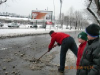 We took a taxi to the Consulate and were told that we had to wait outside, we thought for thirty minutes, but in fact it wasn’t more than ten. In the meantime, we were able to watch the snow from the pavement being shovelled into the road, so that the cars and lorries drove over it, reducing it to water which drained away!