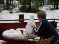The rest of it was very good and the restaurant excellent. The boys were thrilled to be able to go and play in the snow. Rory made a large snow ball and they generally had great fun. Gary and I got talking to the cook, saying how we couldn’t believe the change in the weather overnight, from fairly warm to freezing snow. She looked perplexed; she didn’t think it was cold at all and she wouldn’t really call it snow. Up to this point, I had assumed that she was sane, but now I had my doubts…..not cold?.....not snow?.... Then she explained that it could really only be called “snow” when it was several feet deep and “cold” was minus 50; anything above minus 10 was “warm” and anything above plus 10 was “hot”. This was spring, no real snow and warm. So that explained it!! She wasn’t mad, just pragmatic.