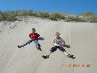 We made our way down the spectacular coastal road of western Denmark. The road was almost deserted and so we could enjoy the spectacular sand dunes without interruption. You can see from the picture that the boys had great fun sliding down them. They were lucky to find a sheltered bit, as in the wind was keen. I thought that I would walk down to the beach and got my face sand blasted for my troubles. I could only walk with my eyes three quarters shut because of the huge amount of sand that was whipped up into the air. I didn’t go far!