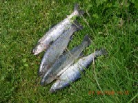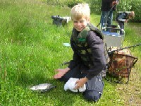 Josh excelled himself and caught four trout, which we had for tea. He was thrilled to bits. Rory couldn’t wait to start having a good look at the poor fish and was amazed at the size of its mouth – huge – as you can see.