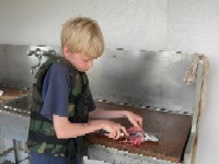 After the fish had been caught, they had to be gutted, Gary was so pleased he had bought a new gutting knife in Rovaniemi and there was I thinking it was just another useless gadget! Both Josh and Rory were shown how to gut a fish properly and to clean it thoroughly ready for cooking. They were very keen to be shown, but were surprised at how difficult it was, not to say messy, but they managed. They were particularly interested in identifying the innards of the fish and I just wish that either Gary or I had been a bit more knowledgeable, one bit looks much like another to me.