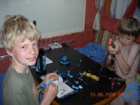 The picture, taken at 6.48, shows Josh making up the Bionicle and Rory trying out the rifle.