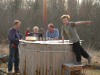 We stayed at a marvellous campsite within the grounds of the Ruunawere Hotel about half an hours drive from Tallinn. Paiva and  Ismo are the new owners and they have made it into the most relaxing of places to stay, with the bonus of an enormous buffet breakfast. It was so good, we stayed for three  nights instead of one. Saunas are commonplace in Finland where they come from, and they had one in the grounds together with a hot tub.  The photo shows Ismo, Josh, Gary and Rory setting it up, having a great time. We had a sauna at about nine and then by eleven were sitting in the hot tub under the stars, it was fantastic.